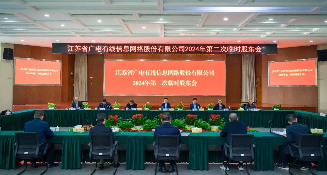 12月16日,江苏省广电有线信息网络股份有限公司2024年第二次临时股东会在南京召开。会议由公司党委书记、董事长庄传伟主持,公司董事、监事、董事会秘书出席会议,公司高级管理人员及相关部门负责人列席会议。
