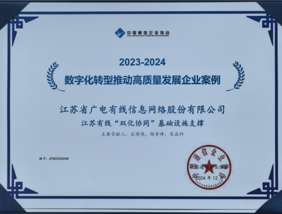 近年来,江苏有线贯彻落实党中央、国务院关于数字中国建设重大决策部署及省委、省政府有关工作要求,助推全省文化产业数字化进程,注重绿色化协同实效,以新应用、新服务不断满足人民群众日益增长的公共文化需求,以新思路、新技术更好地支撑党委政府采用信息化手段执政为民的需要,不断为全省数字经济建设贡献数智力量。作为“产品智能升级与服务变革”入选案例,公司以总部为核心,打造分布式算力中心,在为自身业务提供支撑的同时,向政府、企业提供新一代信息技术的综合集成应用,满足政府机构、大中小企业数字化转型需求,获得了上级有关部门的肯定。