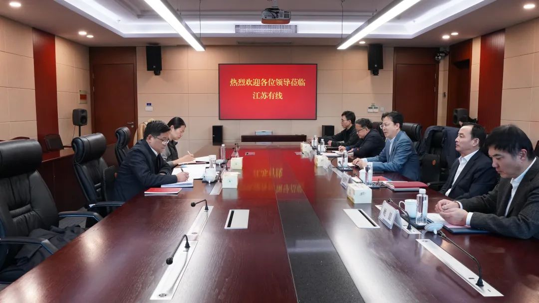 庄传伟对胡竹一行表示欢迎。他说,2024年,江苏有线坚持以习近平新时代中国特色社会主义思想为指导,深入学习贯彻党的二十大和二十届二中、三中全会精神,认真贯彻落实习近平文化思想和习近平总书记对江苏工作重要讲话重要指示精神,聚焦“探索新经验”的重大任务,努力做好“文化+科技+X”的应用体系、质态升级、要素流通和价值提升,较好完成了年初制定的各项工作任务。