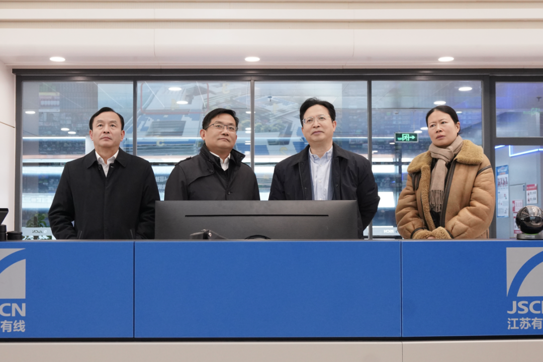 1月15日下午,省人民政府新闻办公室副主任胡竹到江苏有线指导工作。江苏有线党委书记、董事长庄传伟与胡竹一行座谈。