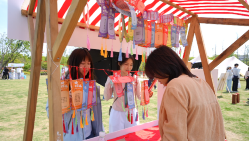 漆扇轻摇,墨色晕染出千年风雅;投壶声起,箭矢划破了静谧时空;灯谜悬垂,智慧流转于斑驳光影。漆扇制作、投壶挑战、猜灯谜、趣味沙包、共创画布……各种蕴藏着传统文化内涵的国潮小游戏,在这里化身兼具趣味与挑战的打卡关卡。