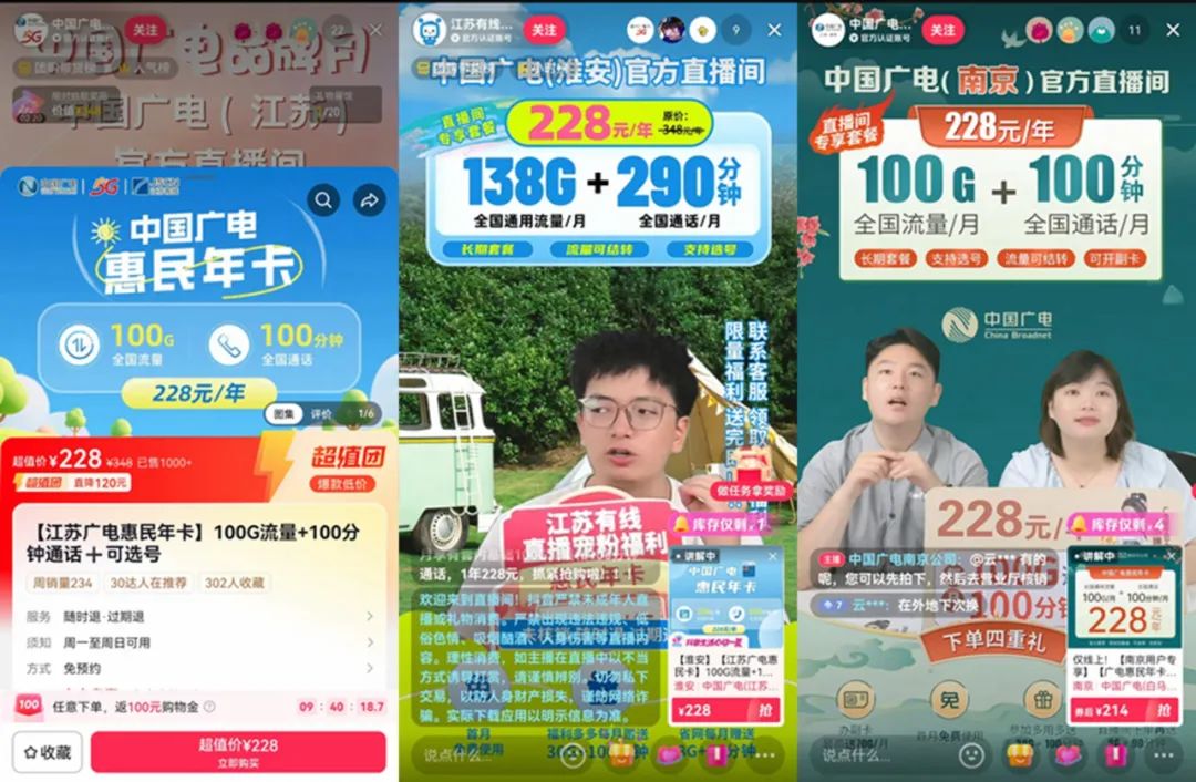 尽管江苏有线此前宣布将下架多款低价通信产品,但DVBCN发现,江苏有线旗下多个官方认证抖音直播间中仍在大力推广售价228元/年惠民年卡,并在页面标注此套餐为“长期套餐”。
