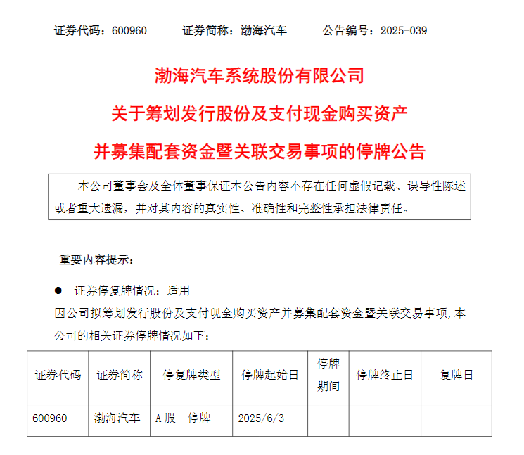 公告显示,本次交易预计构成重大资产重组,且构成关联交易。公司股票自6月3日(星期二)开市起停牌,预计停牌时间不超过10个交易日。