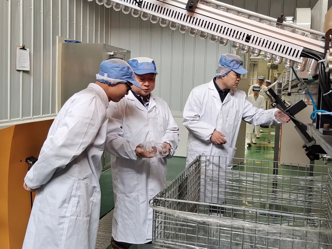 杜仁堂一行参观了河北中鲁NFC多品种果蔬汁生产线,详细了解新品业务近两年取得的成果、遇到的困难和应对策略。