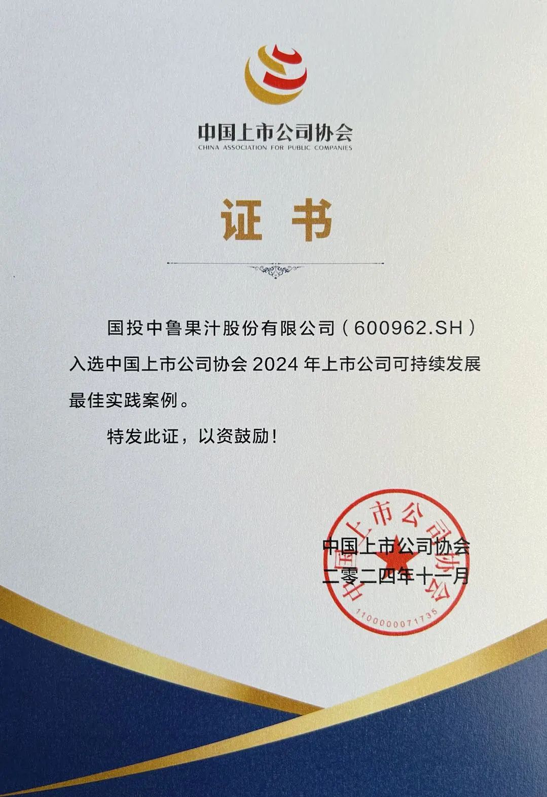 此次入选“中上协2024年上市公司可持续发展最佳实践案例”是对国投中鲁过去努力的肯定,也是对未来发展的鞭策,公司将秉持顺应自然规律与满足农业实际需求的原则,持续推动可持续农业的繁荣发展,促进企业经营成长与乡村振兴战略的双赢共进。