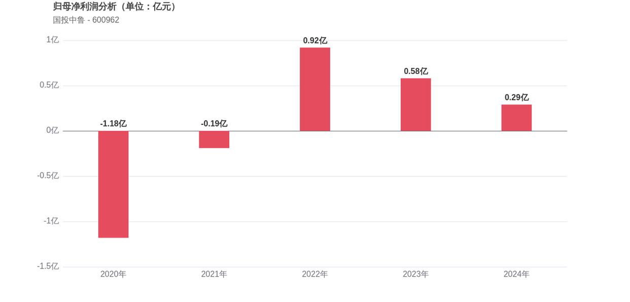 利润角度分析,2020年国投中鲁实现归母净利润-1.18亿元,2024年0.29亿元。公司从亏损状态转为盈利,但盈利水平仍然偏低。