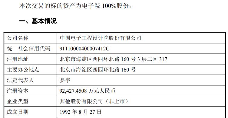标的资产的估值方面,以2025年6月30日为评估基准日,采用收益法后电子院母公司的净资产账面值约24.36亿元,评估增值约35.9亿元,增值率为147.40%。