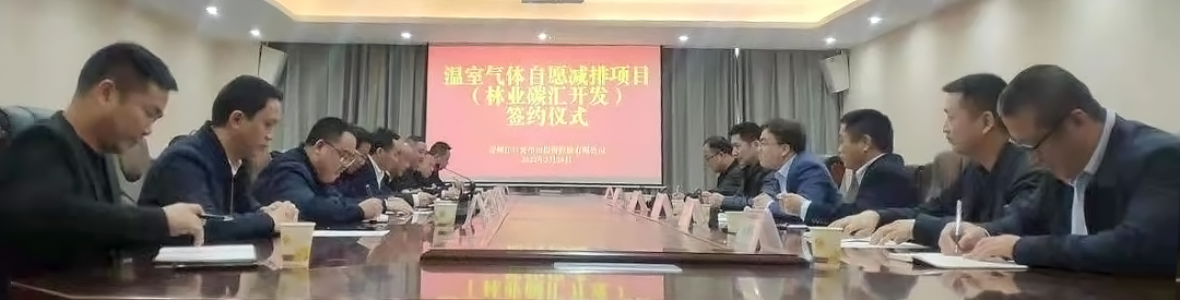 3月28日,森海碳汇与贵州江口梵净山投资控股有限公司(以下简称“梵投公司”)签署《温室气体自愿减排项目林业碳汇资源合作开发合同》。贵州江口县县委常委、常务副县长赵旭特邀出席签约仪式。梵投公司党委书记、董事长郭启军,森海碳汇副总经理陈灿代表双方签约。