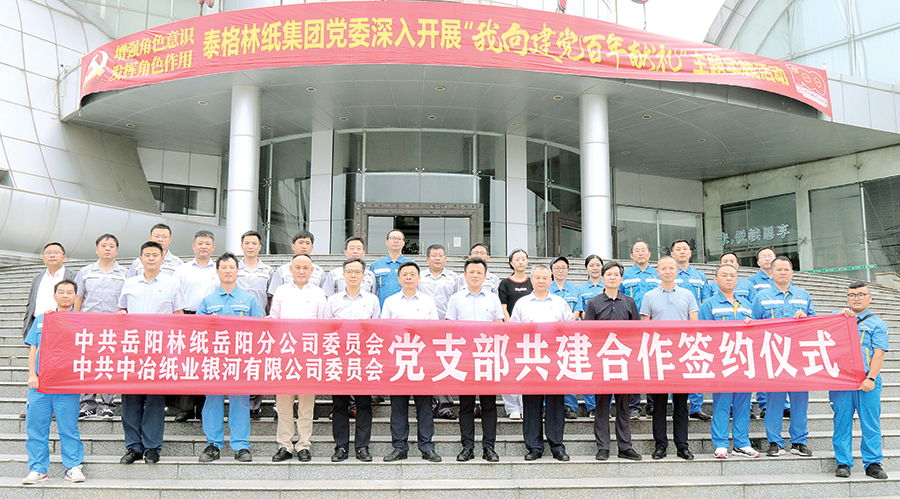 2021年,控股股东中国纸业投资有限公司党委将中冶纸业银河有限公司(简称“银河纸业”)的党委管理权移交给岳阳林纸上级股东泰格林纸集团股份有限公司(简称“泰格林纸”)党委,泰格林纸党委第一时间将岳阳林纸党建做法复制推广至银河纸业,两家企业以党建共建为结合点与着力点,双向联动,同向发力,相互交流干部9人,合力打造以党建引领国企深化改革的新范式,银河纸业党建融合取得阶段性成果,2021年银河纸业利润总额达8819万元。