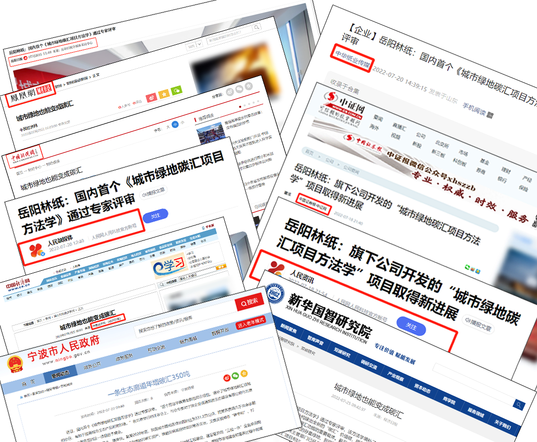 经济日报、中国证券报、证券日报、宁波日报、新华国智研究院、岳阳日报、中国新闻网、人民资讯、经济观察网、中国纸业网、中华纸业传媒公众号、凤凰网、新浪财经、今日头条等主流媒体和新媒体相继报道、转载60余次,介绍《城市绿地碳汇项目方法学》的指导意义和应用前景,以及诚通凯胜和森海碳汇的“蓝碳”和“绿碳”价值开发战略,持续聚焦《方法学》为行业和市场带来的新模式和新变化。