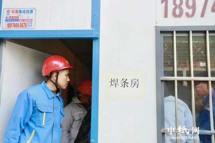 焊接压力容器是“生命工程”,必须做到质量过硬。所有用作压力容器的“焊条”必须事先采取加温做热处理方可使用,项目现场有一个“温暖”的“焊条房”,是焊材的专用工作室,里面备有专用仪器和专用恒温烤箱。目前已对17批钢板材料进行联合验收。化学浆项目邀请岳阳特检院检查,对高压容器操作焊工上岗前均做样板焊接考试并探伤检查,确保焊接质量有保证。为了赶超工期,白天开展焊接工作,晚上凌晨开始进行100%探伤检查,一干就是一通宵。