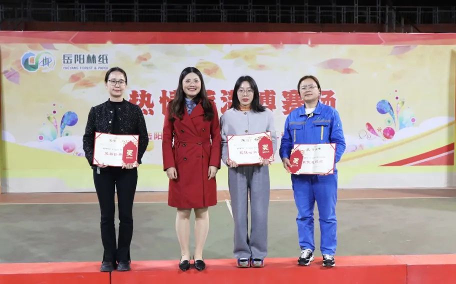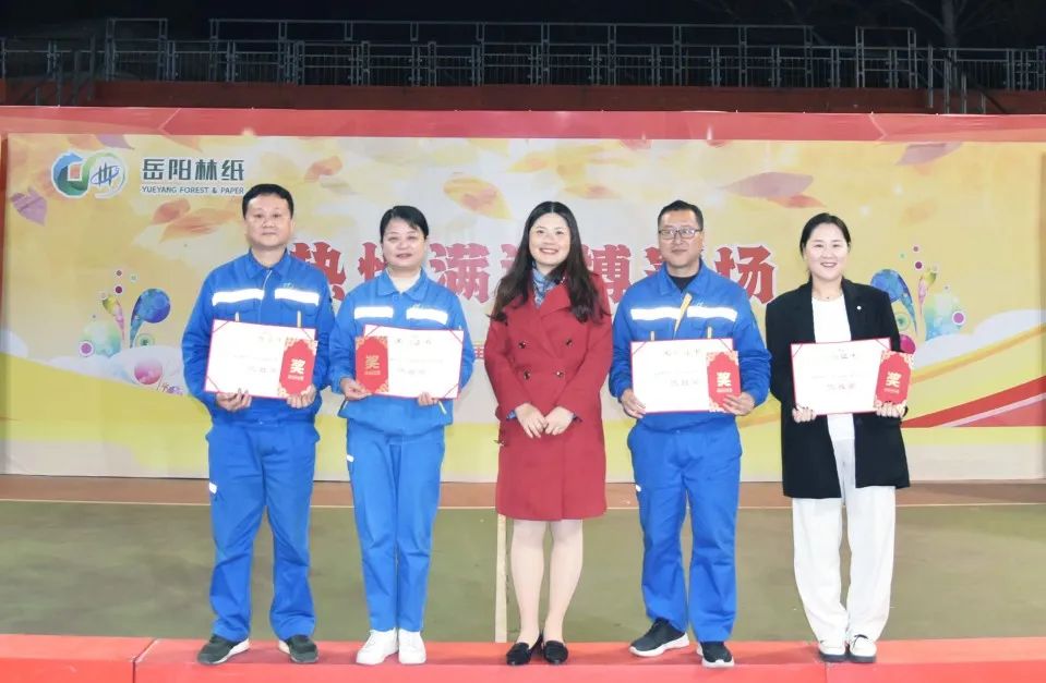 256名职工组成的16支队伍,经过两天激烈角逐,超越队(9、10号机,纸加工,安全环保联队)“拔”得头筹,保卫品管队(保卫部、品管联队)夺得亚军,一往无前队(岳阳林纸总部、诚通碳汇联队)获得季军,挑战队(1、2、3、8号机联队)获得第四名,“绳”力十足队(热电事业部、设备管理中心联队)获最佳组织奖,中纸宏泰热辣队(中纸宏泰代表队)获最佳啦啦队,“项”未来战队(项目部代表队)获最佳拼搏奖。公司领导叶蒙、刘立新、梅玫到场观看决赛,并为获胜队伍颁奖。