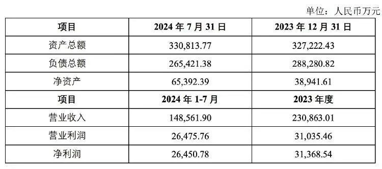 业绩方面,该公司2023年实现营收23.09亿元,净利润3.14亿元;2024年1—7月实现营收14.86亿元,净利润2.65亿元。