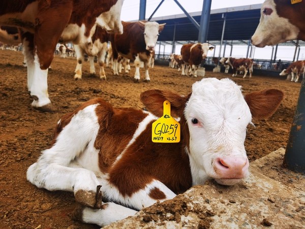为了响应党提出的"种子要牢牢的掌握在自己手里"的重要精神,福成股份与中国顶尖的繁育生物技术公司合作,集成全基因组检测、性别控制、胚胎移植及干细胞等新型繁育技术,在牛场配备国际一流的高标准肉牛繁育实验室。福成牛场第一胎使用德系西门塔尔做基础母牛,刚出生的德系西门塔尔小牛重量在40公斤左右,500天可增重到1500斤。第二胎将采用美系的西门塔尔做种牛,刚出生的美系西门塔尔小牛重量在50公斤左右,500天将可增重到1750斤,可有效解决国产肉牛增重缓慢的瓶颈问题。