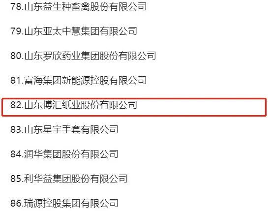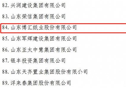 9月21日,省委、省政府在济南召开山东省民营经济高质量发展工作会议。会上,山东省工商联发布了2022年山东民营企业100强榜单、2022年山东民营企业吸纳就业100强榜单。其中山东博汇纸业股份有限公司分别位列第84和82位。