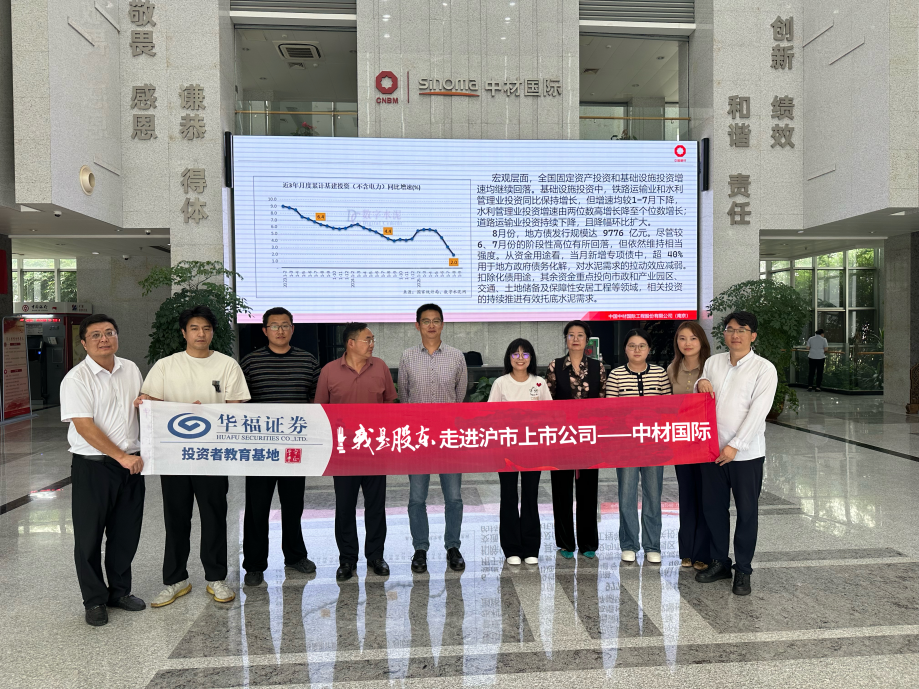 为更好地引导投资者认识沪市上市公司投资价值、积极行使股东权利,更好地搭建上市公司与投资者沟通和交流平台、合理引导市场预期,2025年9月26日,华福证券国家级投资者教育基地联合江苏分公司开展“我是股东走进沪市上市公司中材国际(600970)”活动。