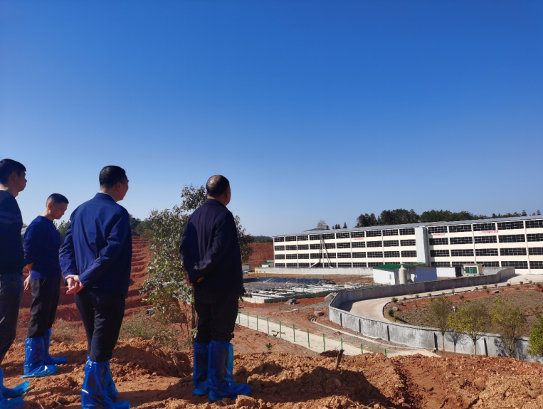 周中林在浏阳兴望种猪场场外隔离区,仔细走访察看了隔离区、场外实验室区域的现场管理情况,详细询问了现场人员生物安全管理流程,并进入猪场旁的高地上参观了猪场整体布局,听取了何军及猪场负责人对相关情况汇报,随后在猪场隔离区与种猪事业部及猪场工作人员进行了座谈。