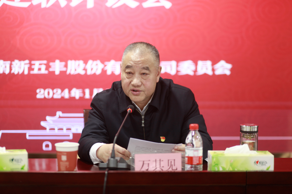 1月23日,湖南新五丰股份有限公司(以下简称“新五丰”)召开2023年度党支部书记抓党建工作述职评议会议,充分发挥考核“指挥棒”“风向标”“助推器”作用,推动党的建设各项工作再上新台阶。湖南农业集团党群综合部副部长张胜辉到会指导,新五丰党委书记、董事长万其见逐一点评并作总结讲话,会议由新五丰党委副书记、副董事长、总经理朱永胜主持。