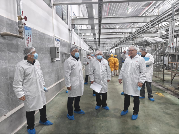 12月6日,由湖南省畜牧水产事务中心二级调研员桑绍明带队的检查组前往湖南舜新食品有限公司(以下简称“舜新公司”)进行生猪屠宰质量管理规范现场检查。永州市农业农村局副局长高宏华,宁远县相关部门领导,舜新公司总经理葛汉根陪同检查。