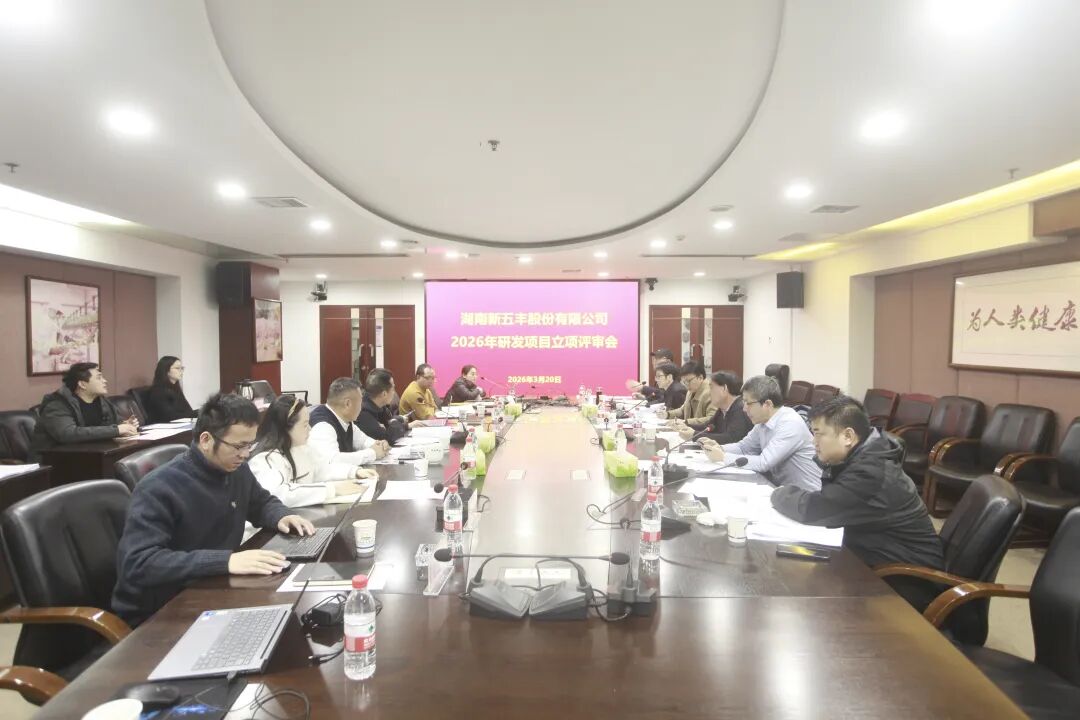 为深入贯彻落实省国资委、湖南农业集团党委和新五丰党委关于科技创新工作的部署要求,紧扣公司降本增效三年行动核心任务,持续强化科技赋能,3月20日,湖南新五丰股份有限公司(以下简称“新五丰”)在总部召开2026年科研项目立项评审会。湖南省生猪产业技术体系首席科学家、湖南农业大学动物科技学院教授黄兴国,湘潭大学计算机学院教授欧阳建权,湖南省畜牧兽医研究所研究员陈晨,湖南农业大学动物医学院副教授葛猛作为外部专家出席会议,新五丰党委副书记、副董事长、总经理朱永胜,湖南农业集团科技创新部副部长周赞等参加会议。
