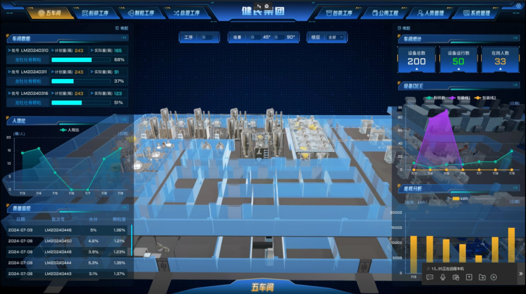 健民集团积极响应国家《工业绿色发展规划(2016-2020 年)》,通过智能制造升级,推动绿色制造体系建设。公司在“生产计划优化”“在线过程控制”两大场景中,提供了可复制、可推广的智能制造单元级解决方案,通过智能数据采集系统对设备运行参数、工艺过程参数、设备OEE实时监测、能耗数据等进行统计分析,设有预警系统,实现了生产全过程能耗与质量在线监测的自动化和信息化,显著提高了能源效率和产品质量。
