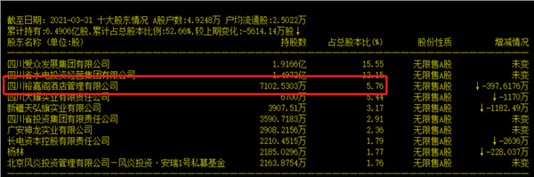 截至本公告日,股东四川裕嘉阁酒店管理有限公司(以下简称“裕嘉阁”)持有四川广安爱众股份有限公司(以下简称“广安爱众”)约7103万股,占公司总股本5.76%。