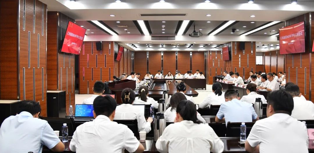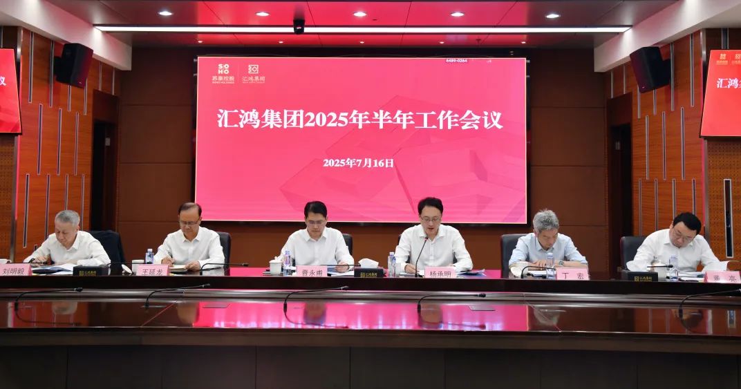 7月16日,汇鸿集团召开2025年半年工作会议,深入学习贯彻苏豪控股集团2025年半年工作会议精神,系统总结汇鸿集团上半年工作情况,综合研判当前形势挑战,部署下半年重点工作,全力以赴完成目标任务。苏豪控股集团副总裁、党委委员晋永甫出席会议并讲话。汇鸿集团党委书记、董事长杨承明主持会议。