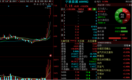 3月2日开盘,宁波能源盘面交易活跃,再收获一个涨停。