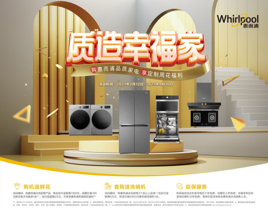 在春风渐暖、舒适宜人的季节里,伴着窗外的盎然绿意,听自然物语奏响春日和鸣,静享惬意休憩。生活的幸福就藏在生活里,期盼着理想的生活落于日常,消费者往往要在繁杂的选择中缜密挑选,选择生活帮手焕新美好家。让选择更简便,百年国际品牌惠而浦开展“质”造幸福家活动,在线下门店送出宠粉福利,以兼具卓越性能与人性化设计的套系化高端家电,让消费者惬意享受家的幸福感。