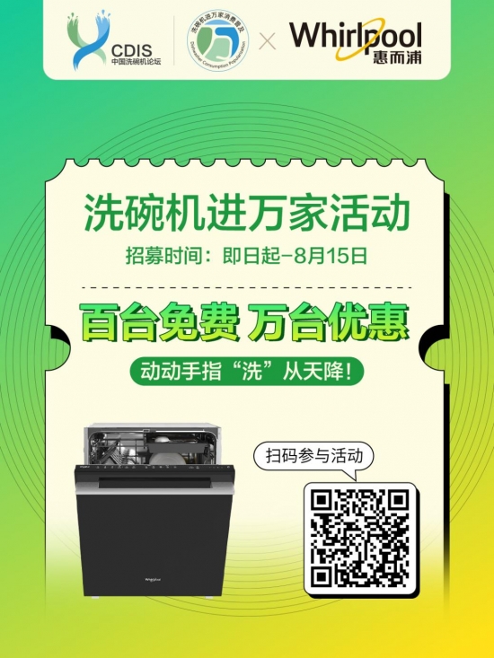 为进一步推动洗碗机走进千家万户,消费普及活动深度与广度提高,活动形式也愈发丰富,更好地贴近消费者心理。近日,惠而浦家电及其他洗碗机品牌联合中国家电网开展#洗碗机进万家计划#福利派送活动,以“百台免费万台优惠”形式,助力更多消费者家庭愉悦享受洗碗机解放双手呈现的美好品质生活。