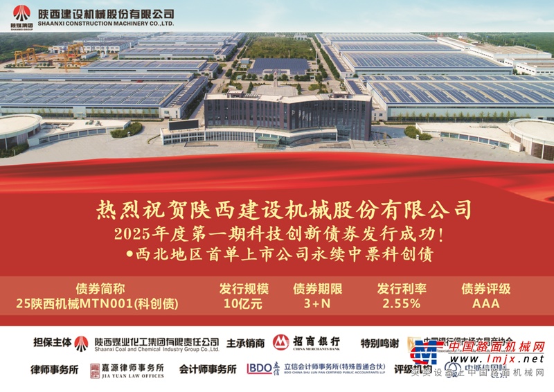 6月26日,陕西建设机械股份有限公司(以下简称“建设机械”)成功发行2025年度第一期科技创新债券,发行规模10亿元,票面利率2.55%,发行期限3+N年,债项评级AAA。