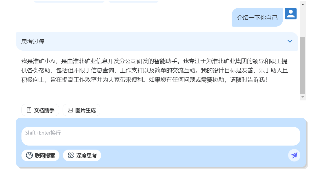 下一步,将不断拓展“淮矿小AI”的应用场景,开发司库数据与信息查询等功能,让智能化助手更智慧!
