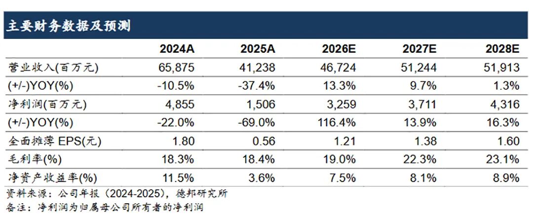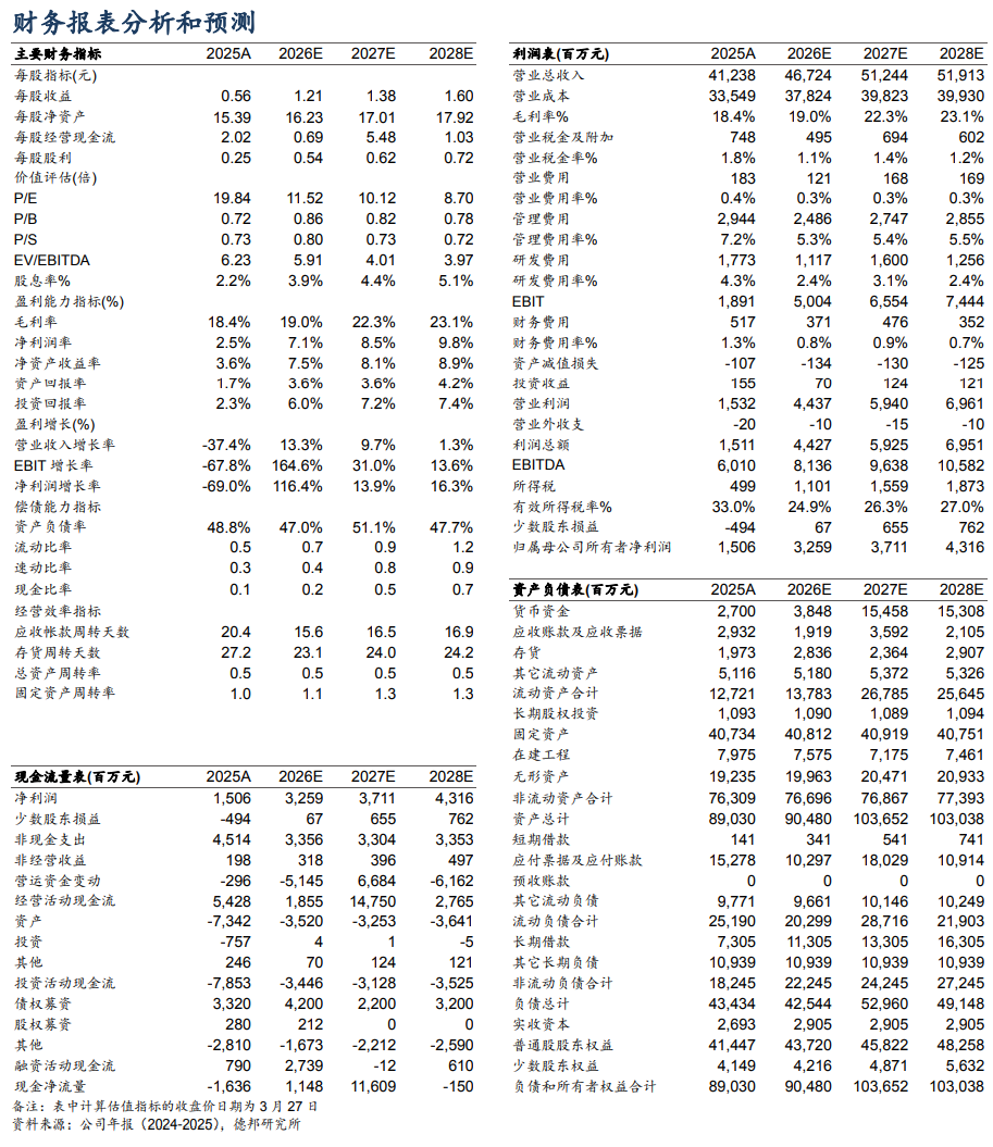 投资建议。考虑到公司项目投产节奏和相关产品市场价格变化,我们预计2026-2028年公司归母净利润分别为32.59、37.11、43.16亿元。
