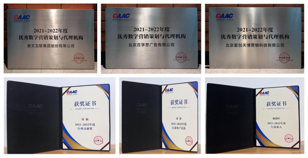 “2021-2022年度优秀数字营销策划与代理机构”浙文互联、爱创、百孚思