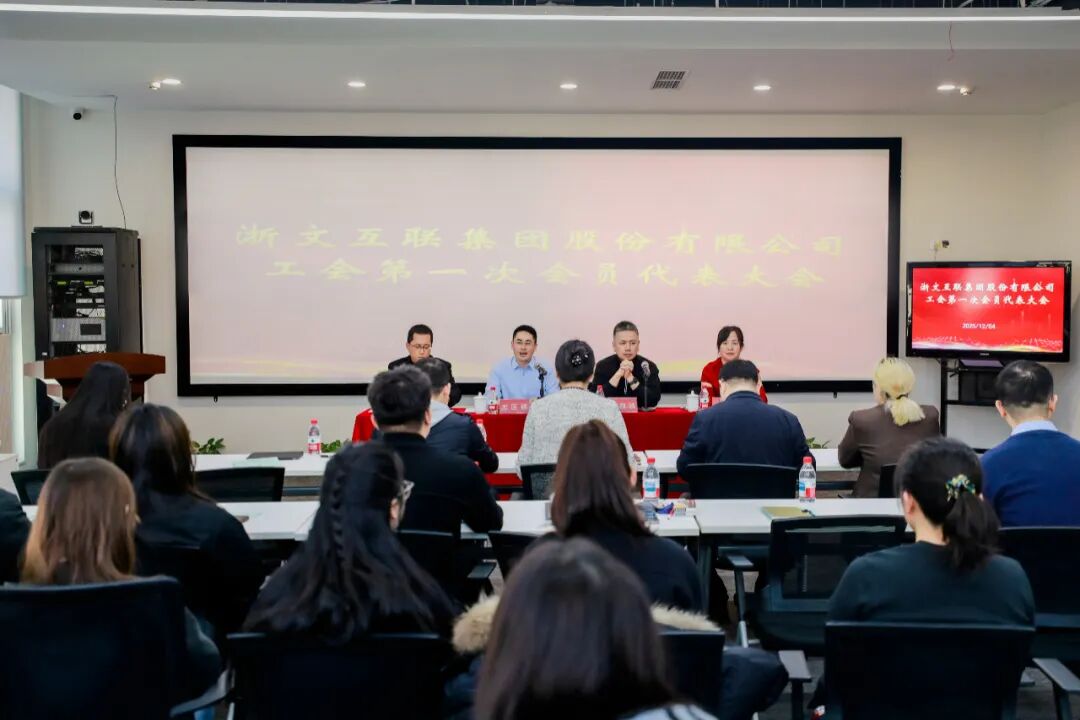 罗亮当选工会主席并做表态发言,作为新当选的首届工会主席,他深感责任重大。他指出,去年以来,在 浙江省文投 集团工会的指导与支持下, 浙文互联 工会顺利完成组建筹备与会员发动工作,标志着公司民主管理迈出重要一步。新的一年,工会将围绕“建机制、暖人心、树标杆、强活力”的工作主线,着力建设职工信赖的温暖家园,为企业高质量发展凝聚合力。重点推进以下工作:一是健全制度保障,做实关爱服务,推动工会工作规范化,畅通职工意见反馈渠道,重点关注异地及一线职工,落实弹性调休、走访慰问与心理健康支持;二是搭建成长平台,强化典型引领,深化“浙文红”人才培养,依托“智享讲堂”开展技术交流与经验分享,加强对外工会交流,借鉴优秀实践经验;三是深化阵地融合,凝聚团队合力,推动党工团协同共建,完善职工活动阵地,精准帮扶困难职工并积极争取上级资源支持;四是落细福利举措,提升归属感受,确保法定福利规范落实,策划特色节日活动,组建文体社团丰富职工业余生活。