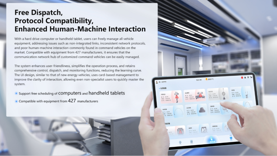 应急指挥车车机交互系统同样获得了法国设计奖,本次设计创新地从网页化大数据界面转型为卡片式车机,优化了触屏体验,界面更加精简清爽。简化了用户视觉认知,帮助用户快速熟悉界面和功能,让用户能够快速、高效地使用产品。通过更清晰的逻辑层级设计,将车辆状态监测、集中控制、音视频、车辆环境等多种功能融为一体,有效提高了操作的安全性和便利性。