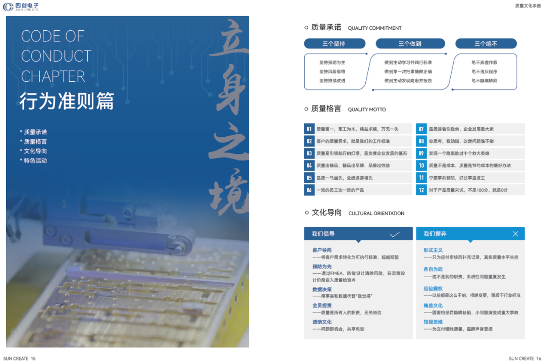 为让质量文化从“理念”转化为“准则”,公司正式发布了《质量文化手册》,标志着质量文化建设迈入规范化阶段。手册以“质量是企业的生命线,是品牌信誉之基”为核心,涵盖文化理念、制度方法、行为准则和知识拓展四大模块,形成“理念引领-制度保障-行为落地-知识赋能”的完整质量管控闭环,为全体员工提供明确的质量指引和行为规范。