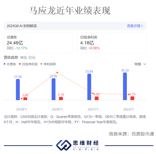 2023年前三季度,马应龙营收24.46亿元,同比下滑12.17%;归母净利润4.18亿元,同比增长0.56%。