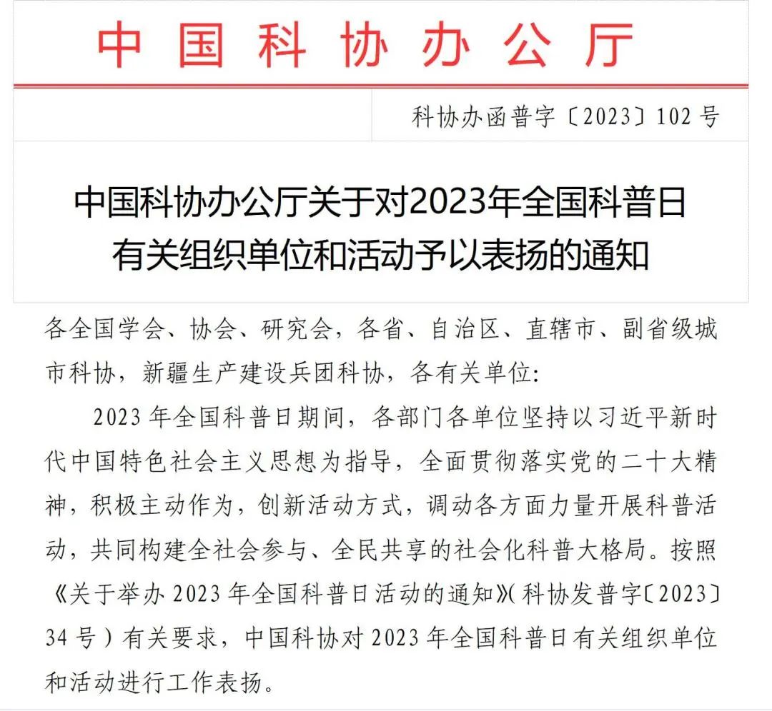 日前,中国科协对2023年全国科普日有关组织单位和活动进行工作表扬。其中,南方电网储能股份有限公司入选2023年全国科普日活动优秀组织单位名单。