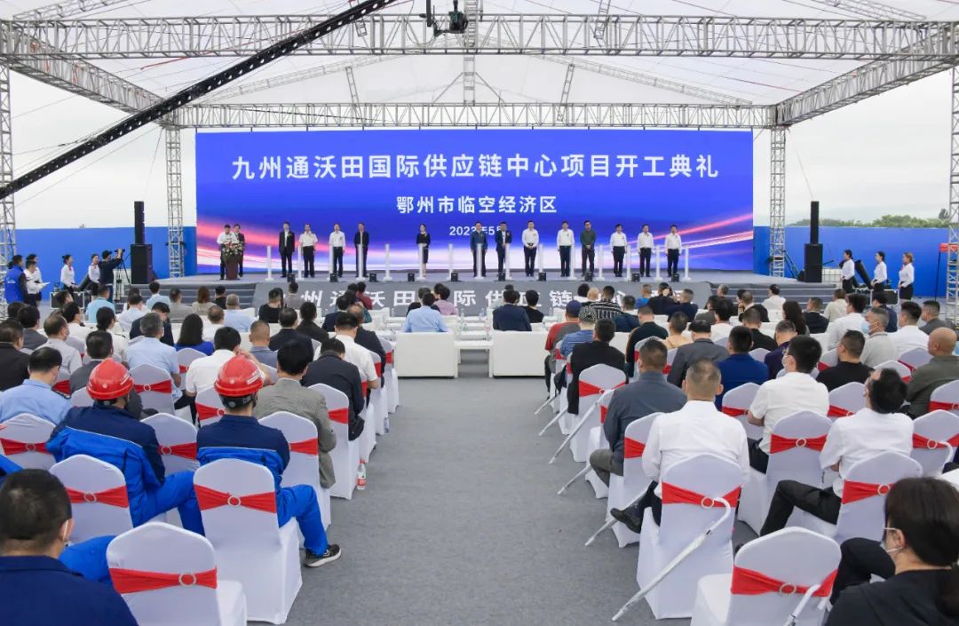 王玺玮代表市委、市政府向项目开工建设表示祝贺。他指出,随着花湖机场的建成投运,多式联运体系加快构建,临空产业集聚发展,空港新城蓄势腾飞。今天开工的九州通沃田国际供应链中心项目,搭建起了九州通集团与鄂州合作共赢的新桥梁,必将为九州通集团加速战略转型、巩固医药流通领域龙头地位提供动能,必将为湖北探索建设“内陆自由贸易港”、打造国际一流航空货运枢纽提供坚强支撑。鄂州将强化项目保障,精准高效服务,全速推进项目建设,抓紧把“施工图”变成“实景图”,推动项目早建成、早运营、早见效。希望项目参与各方紧密协作,着力打造精品工程、示范工程,以大项目畅通大物流,以大物流引领大发展,为鄂州加快建设“两区一枢纽”作出新的更大贡献。