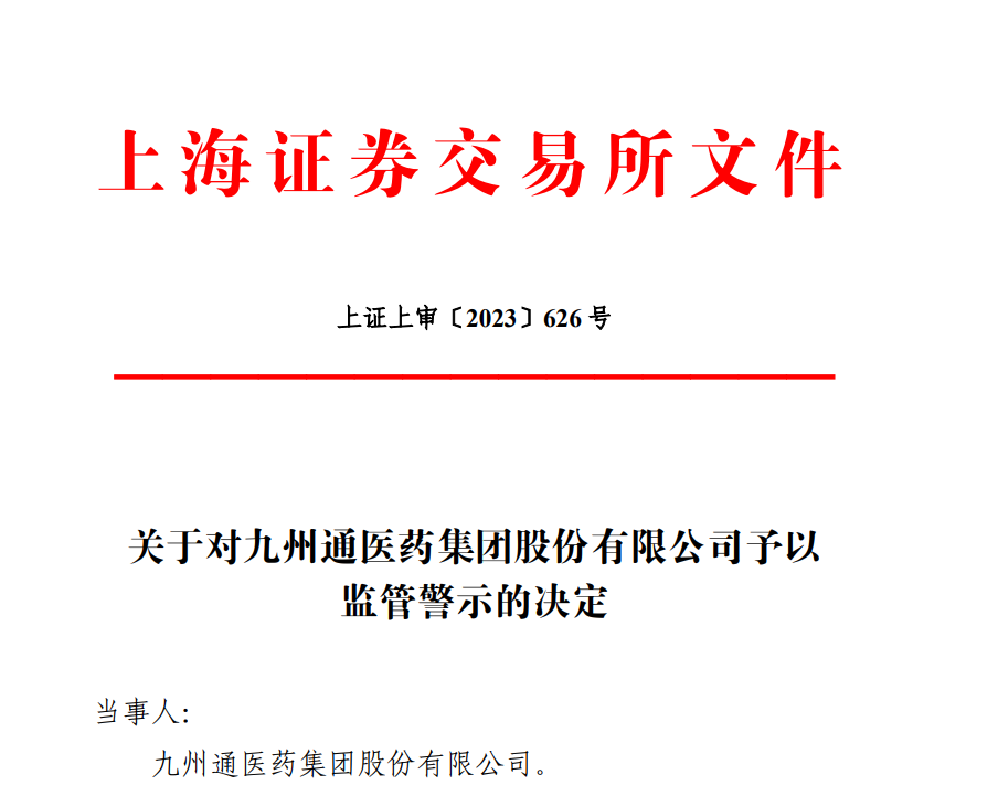 鉴于前述事实和情节,根据《股票上市规则》第13.2.1条、第 13.2.2 条和《上海证券交易所纪律处分和监管措施实施办法》等有关规定,本所上市审核中心决定采取以下监管措施:对九州通医药集团股份有限公司予以监管警示。