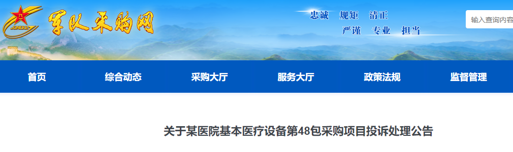 近日,军队采购网发布了一则医疗设备采购项目投诉处理公告。