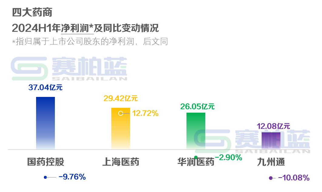净利润(指归属于上市公司股东的净利润,下同)方面,四大药商中只有上药保持了正增长,且增速达到12.72%,实现29.42亿元的归母净利润。