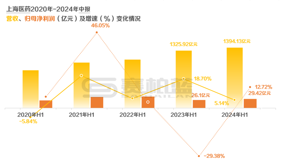 今年上半年,上海医药营收1394.13亿元,同比增长5.14%,是四大药商中增速最高的一家。