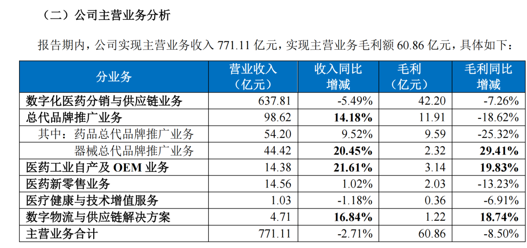 2024年上半年,九州通主营业务的表现如下表所示: