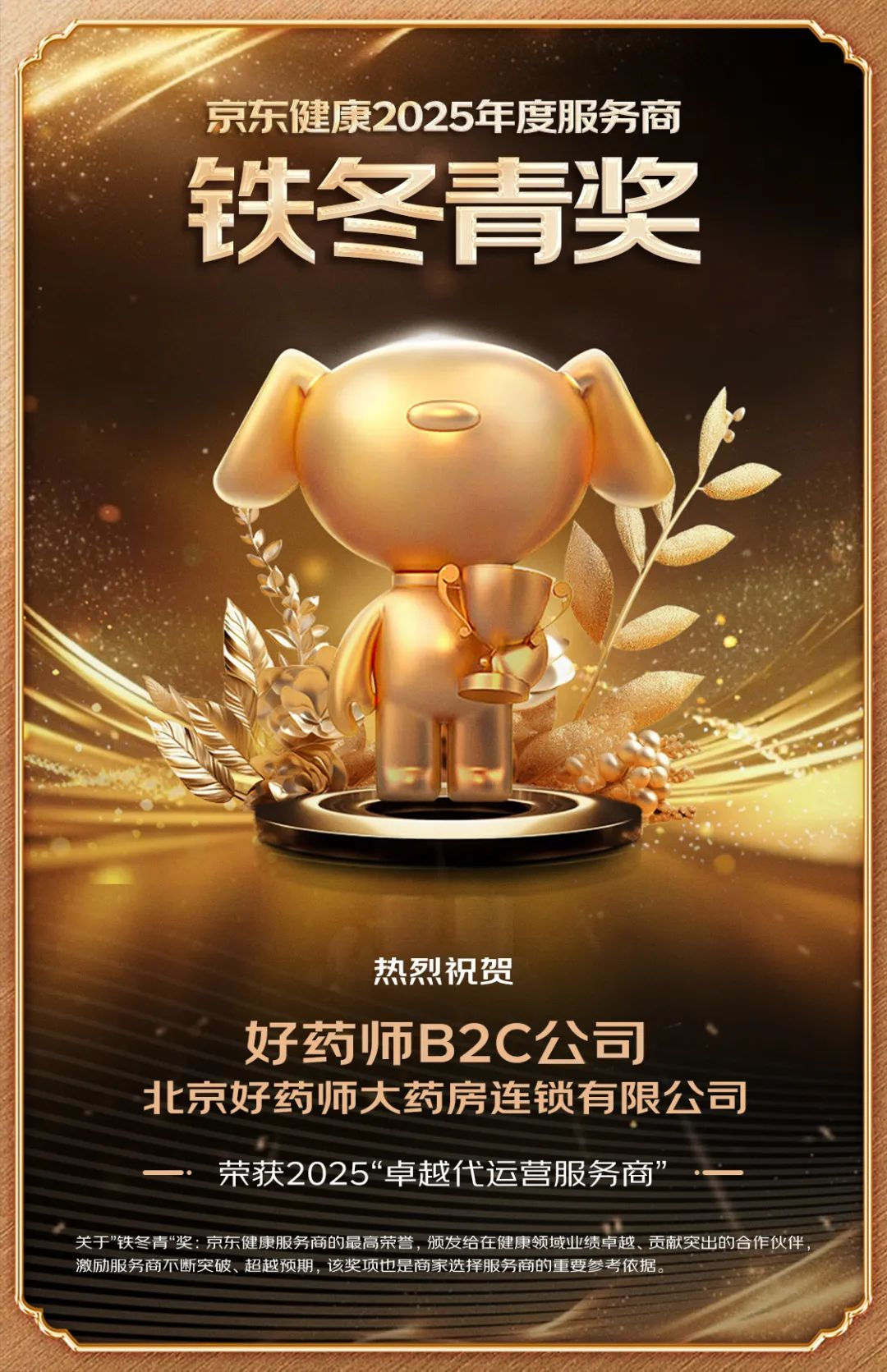 喜报丨九州通好药师B2C公司连续三年荣获京东健康服务商最高荣誉——年度卓越代运营服务商“铁冬青奖”