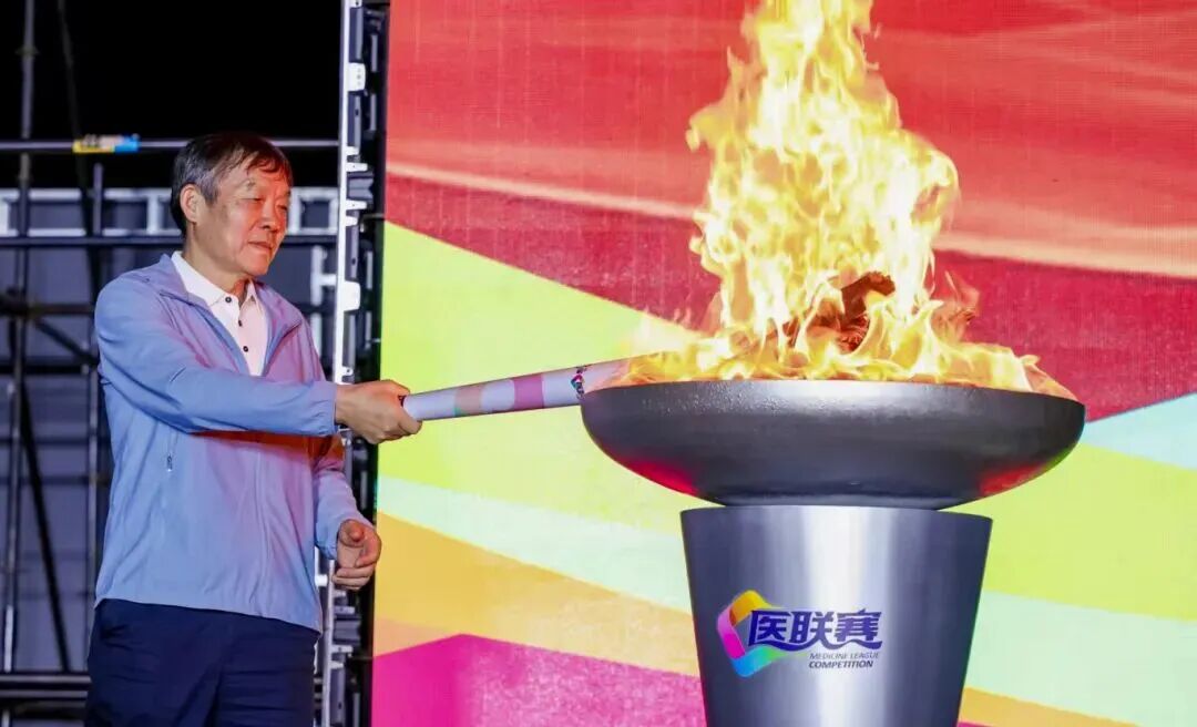 9月8日晚,九州通医药集团名誉副董事长刘树林先生亲临本届医联赛开营仪式,参与庄重的圣火点燃环节,并为好药师远征队送上诚挚的鼓励与嘱托。