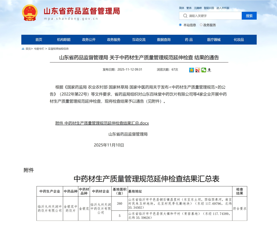 根据湖北、山东两省药品监督管理局最新公布的中药材生产质量管理规范(GAP)延伸检查结果,九信中药旗下黄冈金贵中药产业发展有限公司茯苓种植基地、临沂九州天润中药饮片有限公司金银花种植基地双双通过高标准检查。此次跨区域同步认证,标志着企业在中药材源头质量控制方面已建立标准化、可复制的管理体系,为道地药材的规范化种植提供了示范。