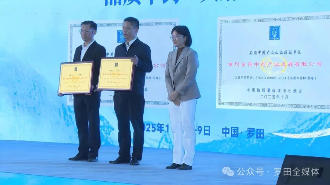 此外,在11月8日举行的“2025年第八届全国天麻会议暨首届大别山道地药材产业发展大会”上,黄冈金贵的天麻与茯苓凭借过硬品质,被同时授予“品质中药材”认证。这是继基地通过GAP检查后,企业在药材品质方面获得的又一权威肯定,彰显出在多品类上的质量保障能力。