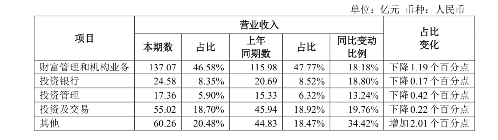 招商证券将其业务分为几个部分,主要为财富管理业务、机构业务、投资银行业务、投资管理业务以及投资及交易业务几个类别,从今年的业绩情况来看,均有不同程度增长。